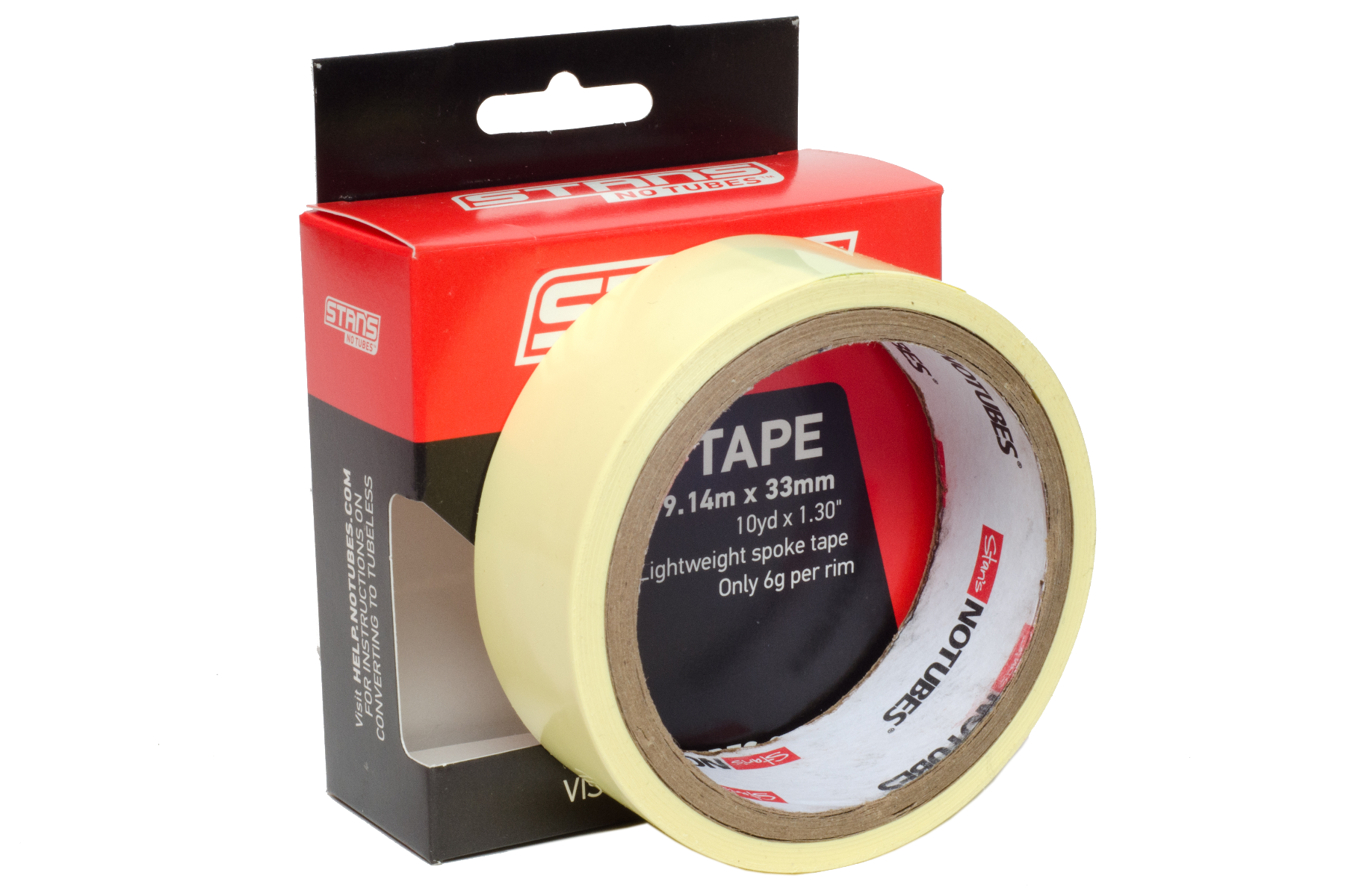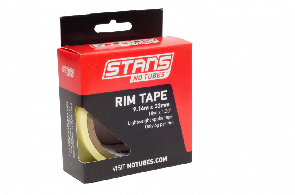 Stan's 33mm Rim Tape is recommended for rims with an internal width of 31-33mm. Our tape is air tight and non-pourous, super thin and will not affect tire fit, and does not leave a messy residue when it needs to be replaced.