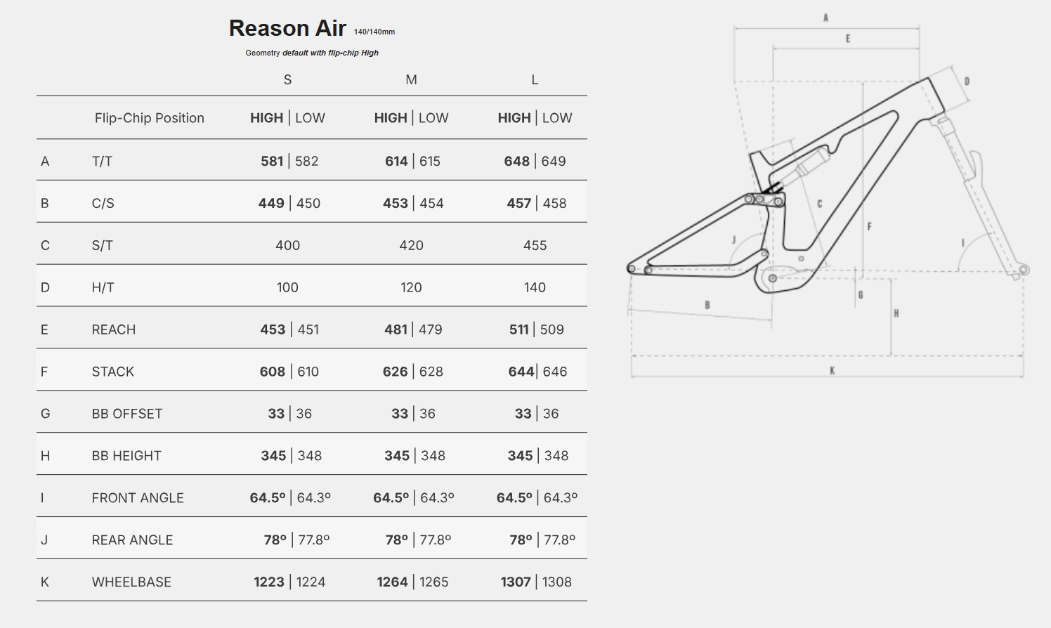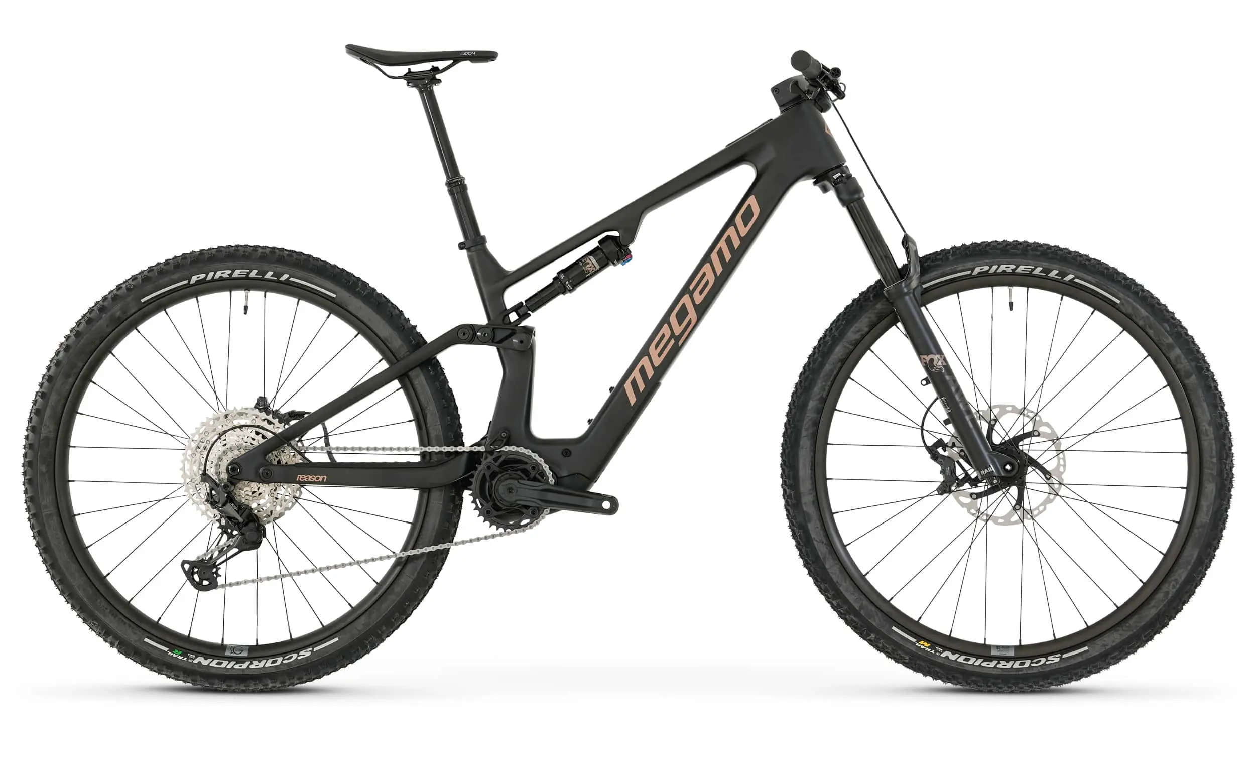 Frame: Reason Full Carbon Frame, Alloy shock extension, Full Integratted Battery, 12 x 148 Boost, Megamo ASP, Wheel travel: 140 mm