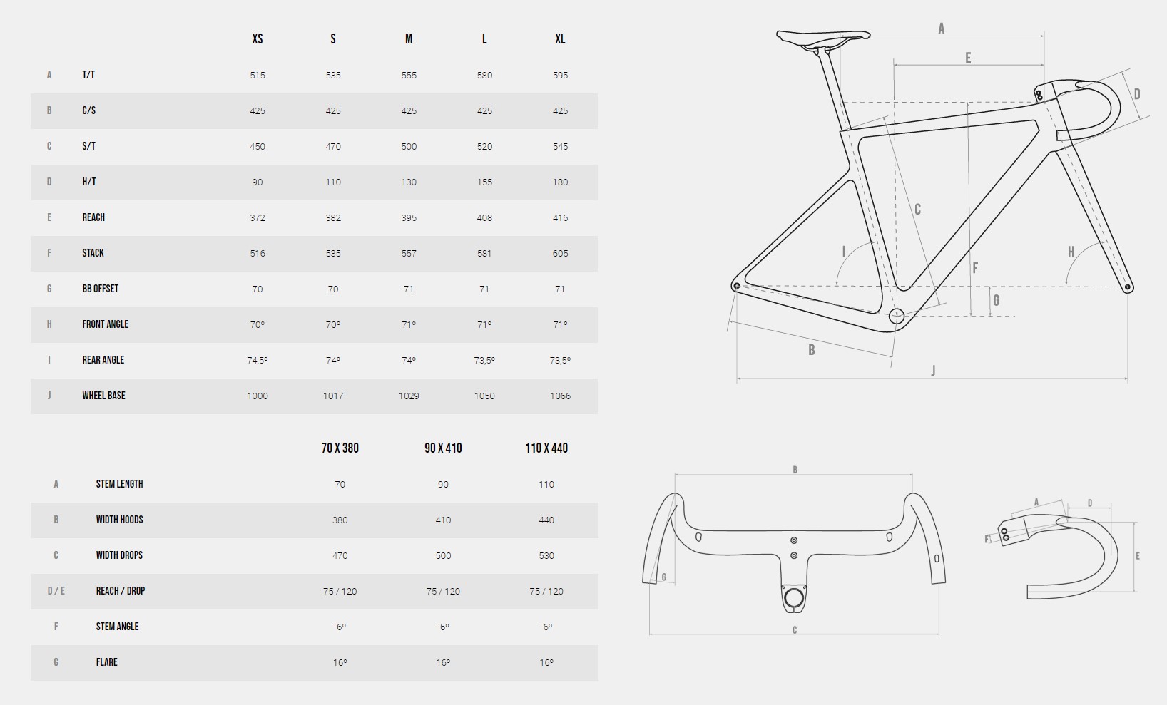 To achieve a frame with balanced geometry suitable for racing, Megamo rely on a long Reach and a low Stack. This ensures that the rider's weight is balanced and the bike's reactions are fast and precise while maintaining our initial focus on performance.