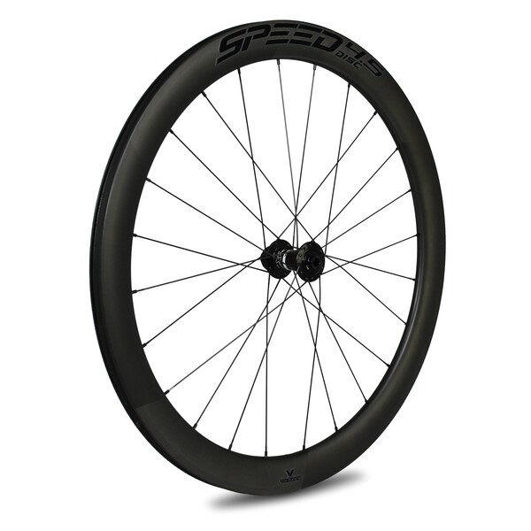 The Veltec Speed ​​4.5 Disc wheelset has a 45 millimeter high full carbon clincher rim, making it the flattest version of the Speed ​​Carbon Disc wheelset.