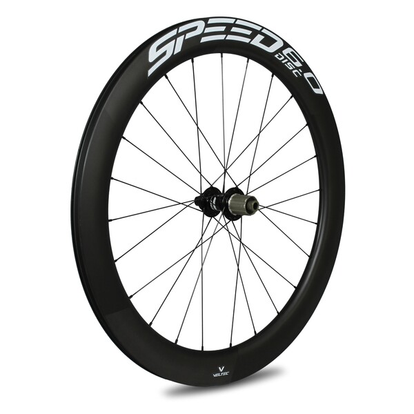 The Veltec Speed 6.0 Disc wheelset has a 60 millimeter high full carbon clincher rim and is therefore in the middle of the Speed Carbon Disc wheelset.